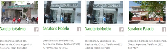 Ofrecemos a nuestros afiliados los mejores sanatorios, clínicas y centros de salud para que ellos puedan elegir donde atenderse, internarse o realizarse estudios. Contamos con servicios en el Sanatorio Galeno, Antártida, Modelo, Palacio, Chaco, Güemes, Sagrada Familia, El Instituto Radiológico de Resistencia, Imágen SRL, Clínica de Ojos Resistencia, etc.